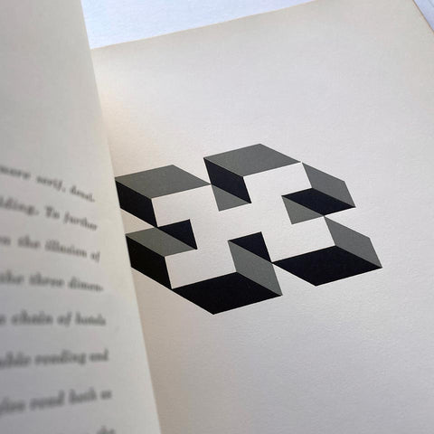In 1960, Norman Ives prepared this beautiful book of symbols and logos. It was designed and printed by his student Hiram Ash and selected for the AIGA 50 Books/50 Covers show in 1961. In it are eight symbols by Ives (plus an intro by Josef Albers). Sometimes there are transparent vellum overlays which turn the symbols into dimensional patterns. It’s an easy read and a pleasant distraction and a thoughtful discourse on the graphic representation of one thing for another. And this copy was inscribed by Ives to Jerry Cinamon, a Boston-born designer who studied at MassArt and Yale and then spent the bulk of his career designing for Penguin Books in England. He spent his later years pointing out typos in our emails and publications and researching German designers. His work (like this book) has been an invaluable resource and evergreen source of inspiration.
