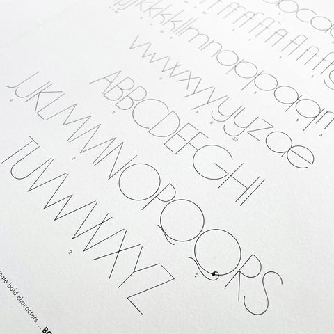 “Designed circa 1965, an ultra light geometric sans serif akin to Kabel and Futura. ‘The alternates for many lowercase letters and the choice of full or shortened ascenders and descenders provided flexibility in a delicate, highly stylized, monoline design’ — Peter Bain ¶ Reproduced in Lettera 4 (1972) as Kabel Hairline. ¶ No official digital version exists. Bain produced a private revival. ICG offered a fairly sloppy rendition which is no longer available. Receding Hairline NF is a loose interpretation.”