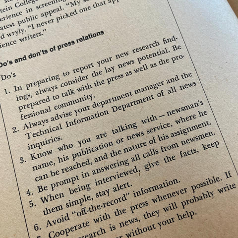 Here’s a practical guide to press relations for scientists and technical personnel—but there’s good advice in there for regular people, too. But why do you care? Because this was designed by Chermayeff & Geismar with illustrations by R.O. Blechman. The Internet does not acknowledge the existence of this item save for the fact that it is held (and undated) in the Chermayeff & Geismar Collection at SVA in NYC.