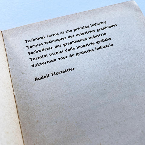 Don’t be fooled by this ugly brown cover. First of all, in real life it’s a little nicer. And the spine is modestly set in Gill Sans. But modest as it might appear, it’s a little workhorse of useful information, beautifully designed and arranged by Rudolf Hostettler. And it’s loaded with information that is still useful today even if we hardly use any of the same tools. It’s really good at explaining where our terms come from and what those same terms are in English, French, Italian, German, and Dutch. Carry this one around in your pocket and know that Alvin Eisenman did the same—because this was his copy, signed by him in pencil on the first leaf.