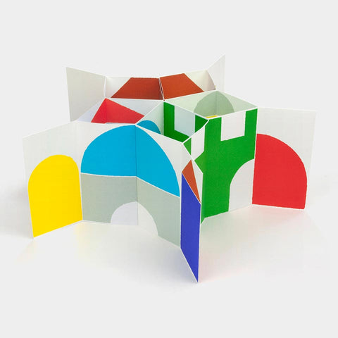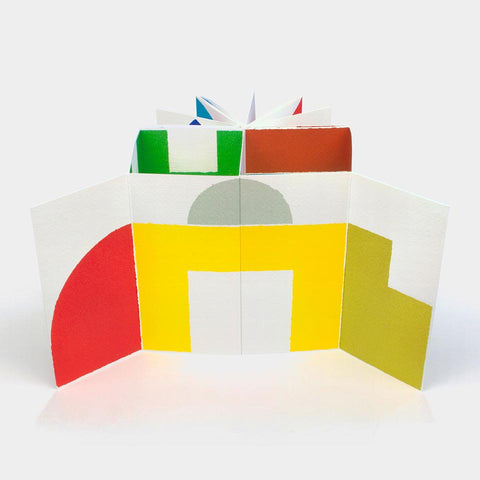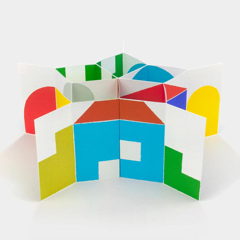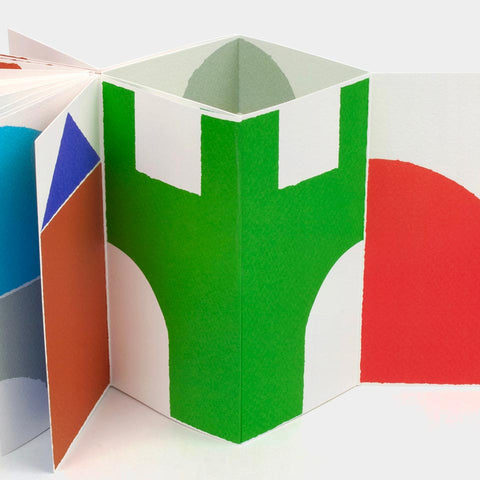 This one is a book whose pages unfold like stage scenery, revealing an imaginary architecture: house, staircase, chapel, park. . . . When opening Julie Safirstein’s work, one enters a poetic and chromatic universe. This pop-up book, composed of multiple folds, invites play and imagination. And we invite you to get one. Or two.