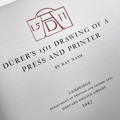 Albrecht Dürer had his finger on the pulse. Just a few short decades after Gutenberg did his thing, Dürer was making plans for pressrooms. His lovely drawing is reproduced here via collotype and is accompanied by an essay by Ray Nash. Is this much ado about nothing? Perhaps. But it’s a beautiful piece of New England printing. And it’s interesting. And there were only 550 copies printed. Collect them all by starting with this one.