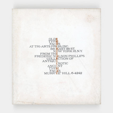 Allow us to quote lazily liberally from the introduction: “Olde has a very individual charm. Weathered wood siding, or a work-smoothed handle, the patina of silver that only use and care can impart. The qualities that endear these things can also be found and accurately incorporated into today’s typography—genuine, straight from the original.” The types shown in this booklet are indeed old, having been cast roughly between 1870–and the 1920s. (Although we spotted Profil in there and that’s from 1947, so don’t believe everything we quote.)