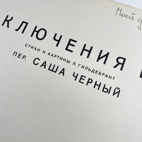 - Condition: Covers and spine are soiled and warn and shows their age. Pages are age with occasional spotting and stained. Sewn as a single 32-page signature, it is loose at the hinges—although it appears it was issued that way. Inscription from Mama to her darling Inochka on the title page. Definitely watch the movie linked above to gauge the state of affairs.