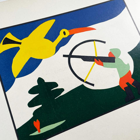Saddle up a bird and let’s go for a ride. This is the first Russian edition of a book that details the adventures of Boba—or, Bob. We know Bob is fearless because he hugs a clown. He rides a whale. He walks with geese. He sees pigs. He catches giant mice. He sees a monkey riding a tricycle. Written and illustrated by Lily Hildebrandt (1887–1974), a Stuttgart-based painter and photographer. Lily designed this book for her son with colored paper cut-outs. The Getty (where the papers of Lily and her husband are held) reports that this is considered one of the first modern children's books, published in German 1918 and translated into Russian by Sasha Chorny in 1924. (Side note: She was having an affair with Walter Gropius at the time this was first published in German. And this is the second time in recent weeks that we’ve referenced Gropius getting around. See here.) From the collection of Inge Druckrey.