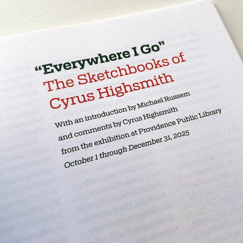 For the past thirty years or so, letter drawer, teacher, author, and graphic artist Cyrus Highsmith carried a sketchbook with him almost every where he went. He drew letters, chairs, tools, bunnies, friends and students, and Darth Vader. He was following lines, working out ideas, and observing the world around him. (He’s not dead. He’s still doing this.) Now all these sketchbooks have found a home at the Providence Public Library where they’ll be on display from October 1 through December 31, 2025. This slender volume published to coincide with the exhibition contains a select showing of spreads with comments by Cyrus. Pure delight.